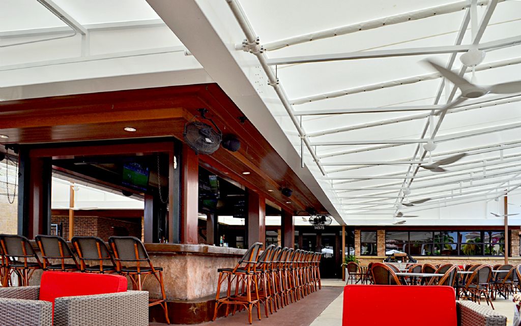 From these installments, our client has gained a great dual-purpose ROI: its customers are able to enjoy the large outdoor patio while maintaining sun and rain protection. This project also shortened wait times for dining seating during the day and expanded the restaurant's night life environment.